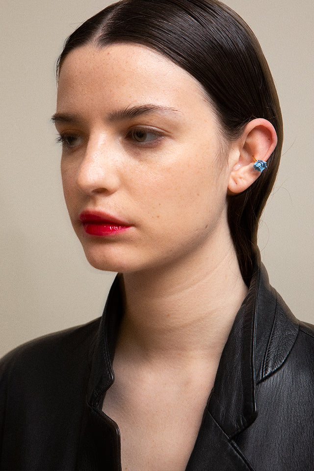 MINI SPIKE BALLOON SING EARRING AQUA BURGUNDY